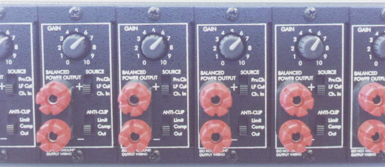 Modular construction allows a choice of various input configurations and connector options. And each of the six output modules is like a separate power amplifier with a multi-detent gain control, compressor, limiter, low-cut filter, and input selector.